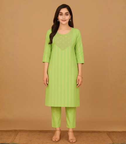 Light Green Striped Kurti with Salwar Pant Set for Women