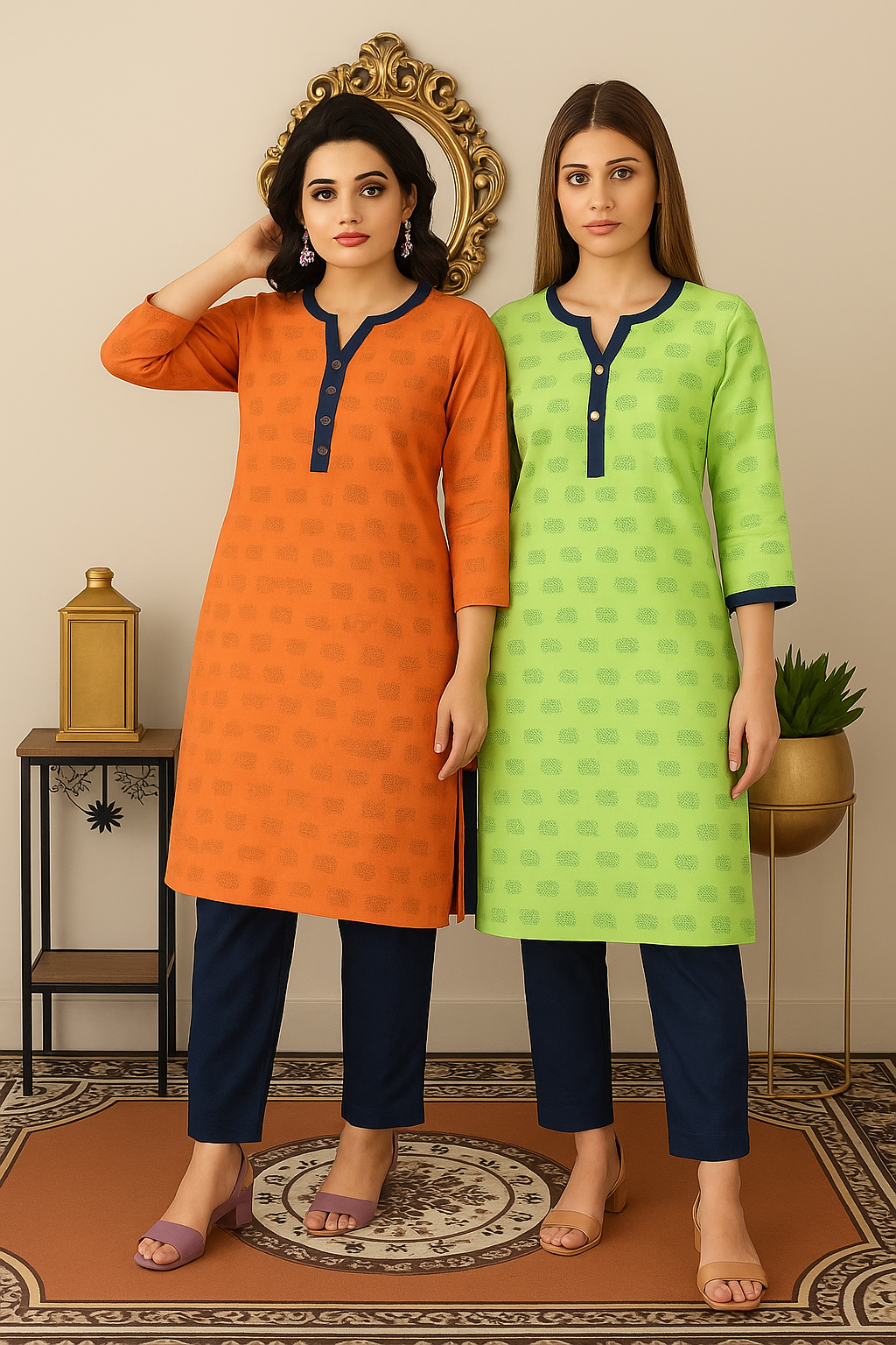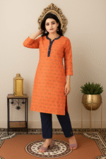 Mustard Yellow Striped Kurti with Navy Blue Palazzo for Women