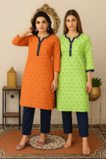 Sky Blue Embroidered Cotton Kurti with Salwar Pant for Women ( Earrings &Hair clip ) Free