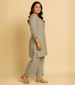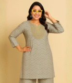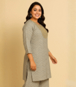 Step into effortless elegance with this Grey Chevron Printed Kurti and Palazzo Set. Designed with beautiful embroidery on the neckline, this outfit blends traditional charm with modern style. Crafted from premium soft fabric, it ensures maximum comfort and breathability for all-day wear. Perfect for office, festive gatherings, or casual outings — this graceful ensemble adds a touch of sophistication to your ethnic collection. Pair it with statement earrings and heels for a polished look!