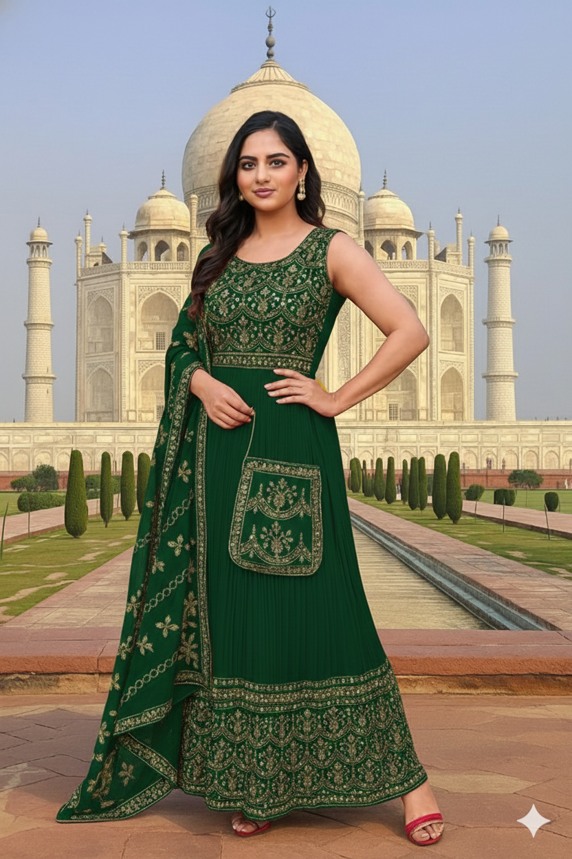 Elegant White Embroidered Naira Cut Kurti with Pants & ( Earrings ) Free